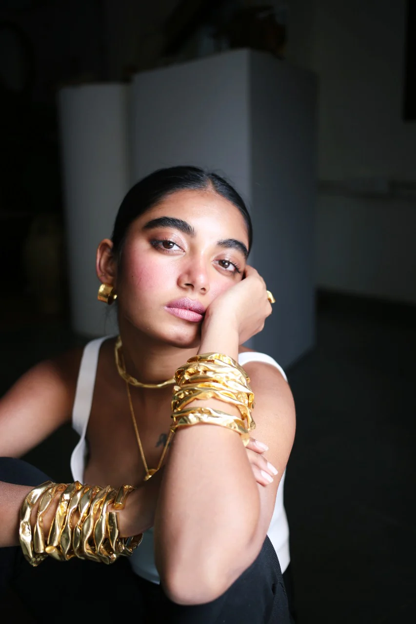 Karishma Mehra, Founder & Creative Head of Joolry, enjoys combining Indian and Western contemporary pieces to create stylish and youthful stacks. She suggests stacking traditional bangles with modern bracelets or layering statement necklaces with intricate Indian jewellery.