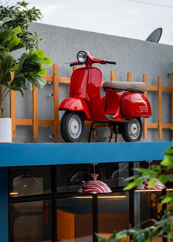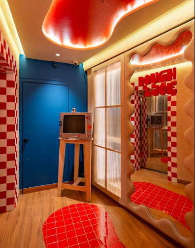 Bandra’s newest opening brings a pizza-forward, coffee-led sensibility to Hill Road. Founded by Priyanka and Khushal Kotak and inspired by their son Vansh, Dough & Joe takes shape as a 2,400 sq. ft. neighbourhood space built around simple food and a sense of community. Designed by Studio 6158, the interiors blend vintage Italian warmth with Mumbai’s easy charm—think an open kitchen, a nostalgic Sony TV at the entrance, and a terrace punctuated with a Vespa and oversized coffee mugs.