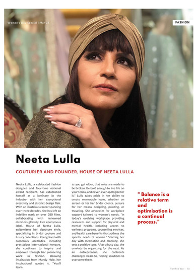 Womanhood is a word that carries immense responsibility, courage, integrity, grit, and respect, and should be celebrated every day. Women around the world have proven their skills as successful entrepreneurs and professionals, and they understand the ongoing pursuit of mastering work-life balance. Keeping this in mind, our Women's Day Special Issue is a distinguished celebration of the exceptional women who have significantly impacted various domains. This special issue is close to my heart, and with this edition, we expand on The Style List Female Powerhouse list, launched on our website in 2020.