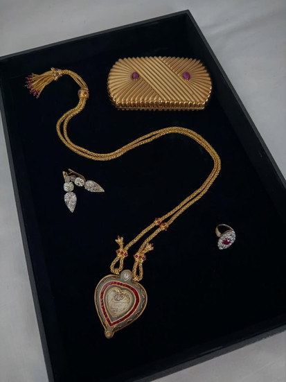Nothing quite screams the theme of the movie better than the Parsi inscription on the pendant that reads, “Love is Everlasting.” Befitting of the history that the ornament carries, the pendant was first gifted to Nur Jahan by the Mughal Emperor Jahangir. Passed down the line, the ornament experienced romantic exchanges. Next in line, Shah Jahan gifted the ornament to his beloved wife Mumtaz Mahal, known across the history of the Taj itself. Drawing its name from the monument, Taj Mahal, the ornament as worn by Robbie, was poured into a gold and ruby chain by the then in-house designer at Cartier, Alfred Durante, after acquiring the pendant.