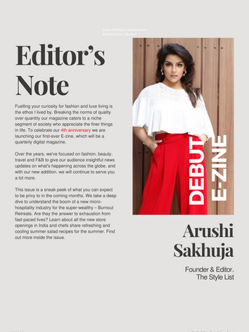 Fuelling your curiosity for fashion and luxe living is the ethos I lived by. Breaking the norms of quality over quantity our magazine caters to a niche segment of society who appreciate the finer things in life. To celebrate our 4th anniversary we are launching our first-ever E-zine, which will be a quarterly digital magazine. Over the years, we've focused on fashion, beauty, travel and F&B to give our audience insightful news updates on what's happening across the globe, and with our new addition, we will continue to serve you a lot more.